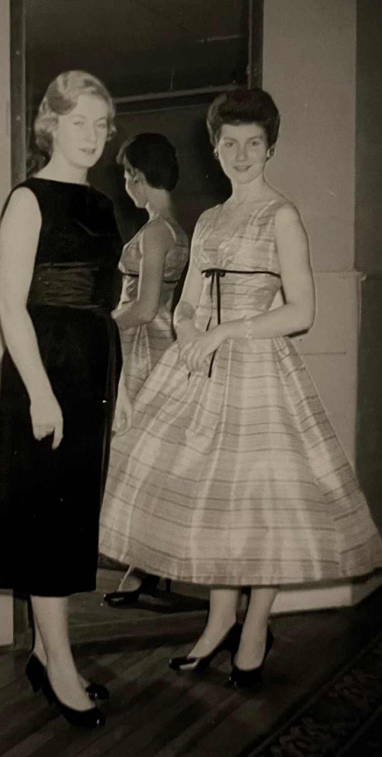 Diane MacDonald (right) at Fall Formal, 1957.