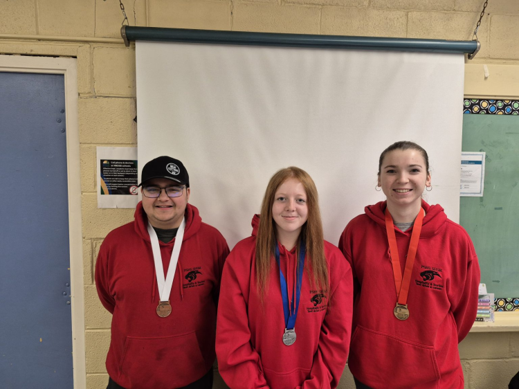 Grade 12 students Leila Kennedy and Scarlett Hargrave won gold and silver, respectively while fellow Grade 12 student Zach Hoskin took home the bronze, for a full sweep of medals for NNDSB.