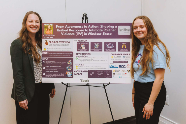 Dr. Amy Peirone, a professor in the Honours Bachelor of Applied Arts in Social Justice & Legal Studies program, is spearheading a project which received funding through a WE-SPARK Igniting Discovery grant, called From Awareness to Action: Shaping a Unified Response to Intimate Partner Violence (IPV) in Windsor-Essex.'