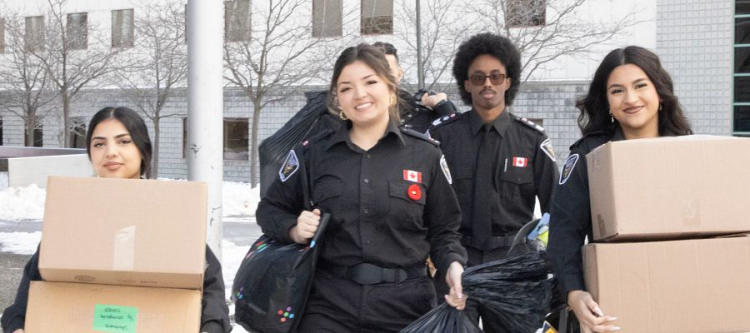 Their leadership culminated in a coordinated effort on Saturday, December 13, 2025, in Toronto, where students from the Project Hope Committee loaded the toys into a police property truck bound for 51 Division, ready for distribution. Twenty students, in full uniform, joined 51 Division officers in Toronto to meet nearly 1,000 refugee families. Working in close collaboration with the officers, they helped ensure that every child received a toy and left with a smile.