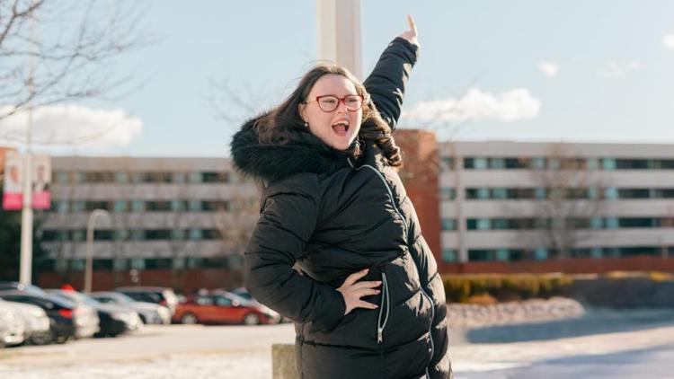 Rotolo, who graduated from the Community Integration Through Co-operative Education program in 2021, loves coming back to her alma mater. She's been extra excited, however, on her latest returns as she has four banners featuring her likeness and name on display at North Campus and two at the Lakeshore Campus.