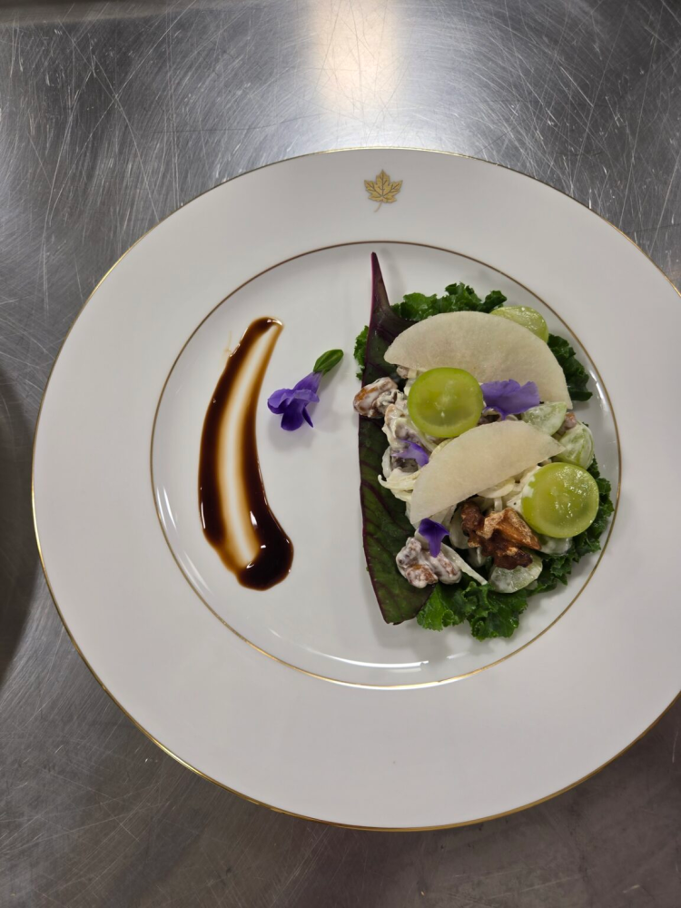 Composed Waldorf salad that Fry prepared for the Imperial Princess of Japan.