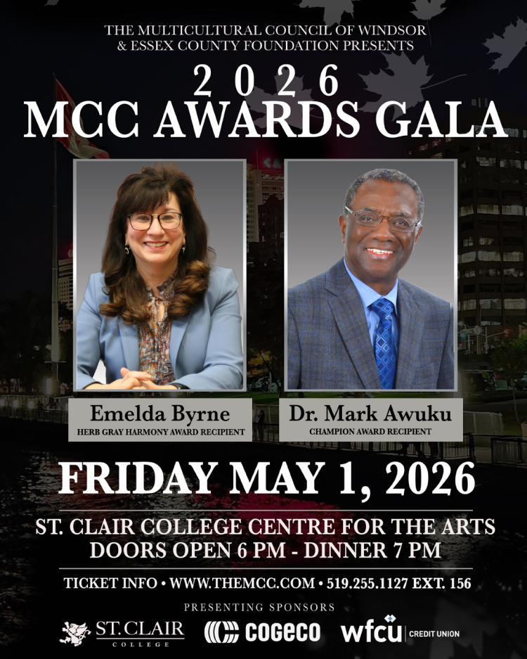Director Byrne and Dr. Awuku are distinguished community leaders whose professional excellence, sustained service, and commitment to advancing equity, diversity, and inclusion have had a profound and lasting impact across Windsor-Essex. "For more than two decades, the MCC Awards Gala has recognized individuals who are dedicated to helping others and making our community a more welcoming place for all," said Fred Francis, Executive Director of the MCC. "Both of these worthy recipients exemplify the values and dedication to community that these awards represent."