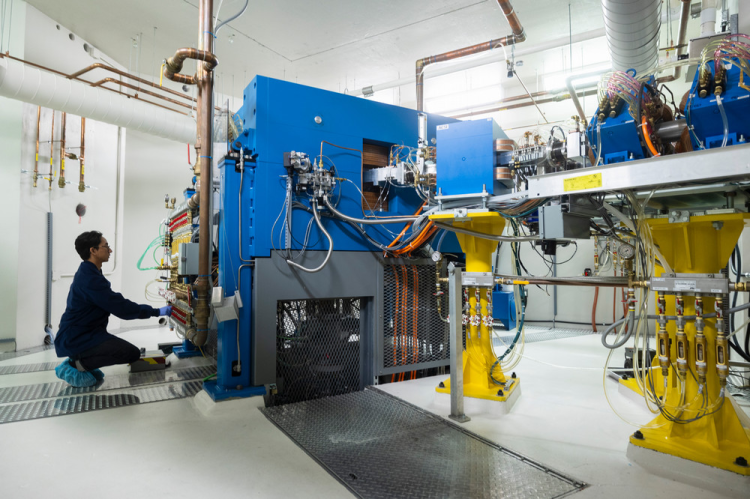 The Class II nuclear facility houses a 24 MeV cyclotron and adjacent workstations. The cyclotron is a particle accelerator that produces radioisotopes that are essential for medical imaging and therapy. Each day, the cyclotron supplies a radiopharmaceutical known as FDGs for PET-CT scans at regional hospitals, helping patients get faster, more reliable access to care.
