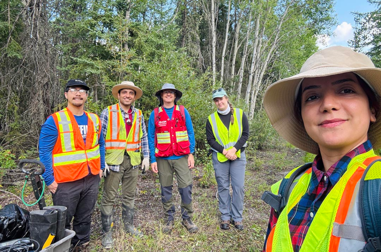 Dr. Camille Partin (PhD) (left) with trainees from USask and industry and international collaborators heading out for field work to study critical minerals in northern Saskatchewan. (Photo: Submitted)