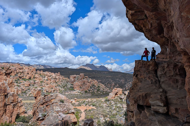 Corresponding authors Dr. Claire Browning from the University of Cape Town and Dr. Sarah Gabbott from the University of Leicester admire the spectacular caves and cliffs of the Cedarberg Mountains, near Cape Town (South Africa) where many trace fossils were discovered. (Photo: Simon Andrews)
