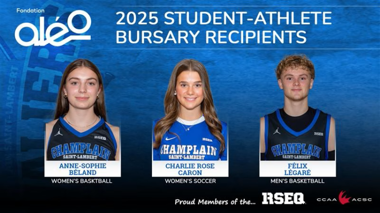 Three first-year student athletes from Champlain Saint-Lambert were awarded scholarships by the Aléo Foundation valued at $3,000 over three years.