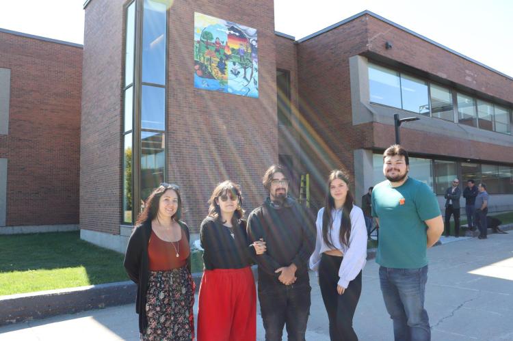 On Wednesday, October 1, Champlain Saint-Lambert unveiled a new mural created by three students in the Indigenous Student Ambassadors (ISA) group in collaboration with art therapist Megan Kanerahtenha:wi Whyte.
