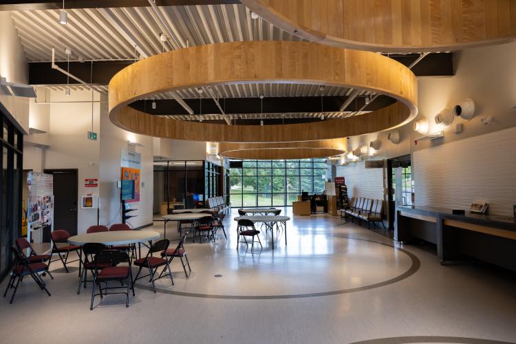 Designed by Critchley Hill Architecture Inc. and completed in 2018, The Village serves as a community-focused centre for health, culture, and wellness education. The facility includes clinics, labs, and culturally significant spaces such as a harvest kitchen and ceremonial gathering room. At its heart, the light-filled Village Centre connects students, elders, and community members, fostering a "living lab" where learning, healing, and cultural exchange thrive.