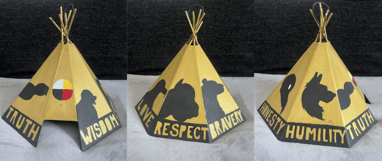 "I was in an art class and I counted all the sides of the tipi. It was a perfect idea to paint a medicine wheel and the seven sacred teachings of wisdom, love, respect, bravery, honesty, humility and truth," Whitehead says.