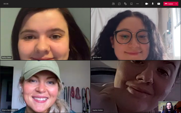 A group of CYC students video chat to plan their initiative for children and youth in the Faith Welland community. From top (clockwise) Kaitlyn Baker, Jamie Wertz, Sophie Holden, Spencer Russell (small), and Shania Martindale.