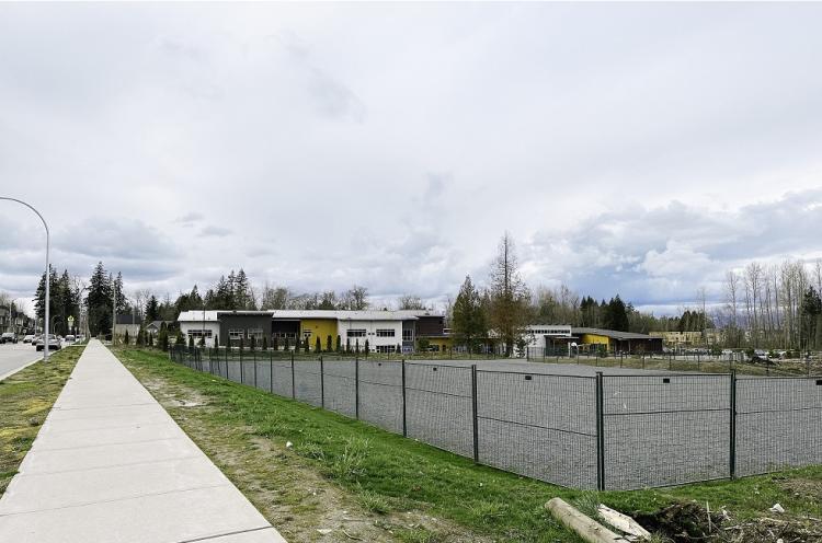 The park could not be fully constructed due to a delay in the watercourse permit approval, and therefore the half-field bordering 78 Avenue was constructed as gravel to provide a temporary open space for SD35 use for youth activities.