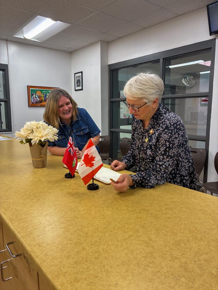 A piece of local history came full circle at St. Francis Catholic Elementary School when Ontario's current Lieutenant Governor, the Honourable Edith Dumont, visited the school and added her signature beside that of former Lieutenant Governor Pauline Mills McGibbon, who visited the school in 1975.