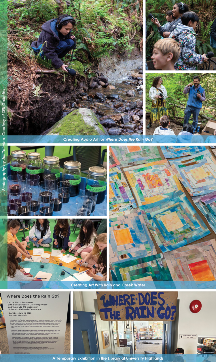 Two Grade 4/5 classes spent eight weeks at the end of the last school year creating their art project Where Does the Rain Go? Supported by their teachers and three local artists and art educators, the children explored the path of rainwater from the peak of Burnaby Mountain to creeks and beyond - learning how it ultimately flows into the ocean.