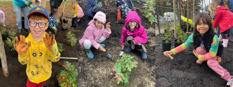 "Our school community has been learning about native planting and climate change through in-classroom activities," says Aaron Parker, Principal of Tillicum Elementary School. "It has been such a heartwarming experience to see all of our students helping to plant hundreds of plants on the school site within new natural areas, as part of a rain garden, and around a new outdoor classroom."