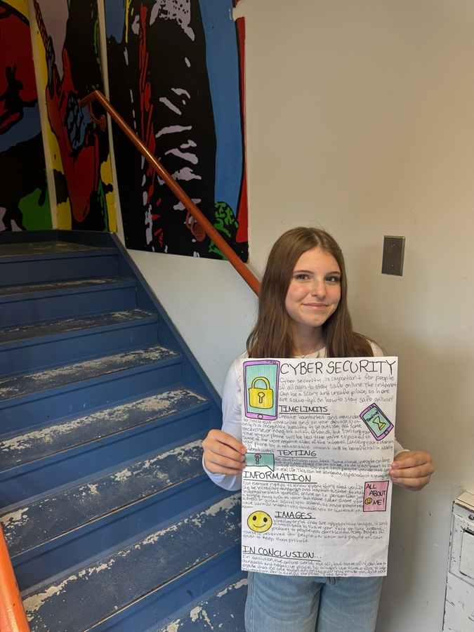 As part of this learning, students were invited to share their own tips and messages for staying safe online, and many participated by creating original artwork, videos, and posters promoting cybersecurity awareness.