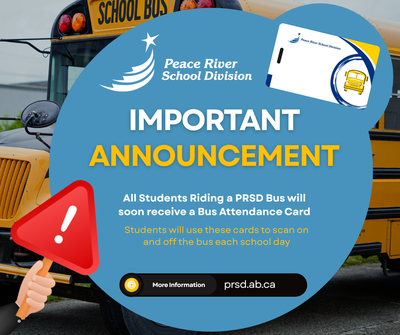 We appreciate your partnership in making student transportation as safe and efficient as possible. This new system is a positive step forward for everyone utilizing our school buses. If you have any questions or concerns regarding the new Bus Attendance Cards, please do not hesitate to contact the PRSD Transportation office at 780-624-3006.