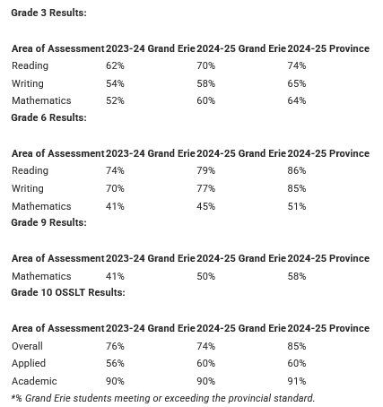Roberto notes, "Grand Erie continues to delve deeply into mathematics and reading with an emphasis on individual student growth. Instructional strategies and assessment tools enable a responsive and dynamic approach to student achievement