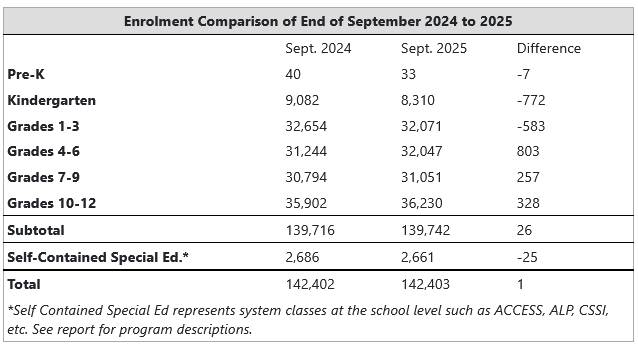 The report outlined a slight increase of the enrolment number in Alternative Programs. As of September 2025, there are 28,016 CBE students enrolled, which represents an increase of 258 students or 1.7 percent from the previous year.