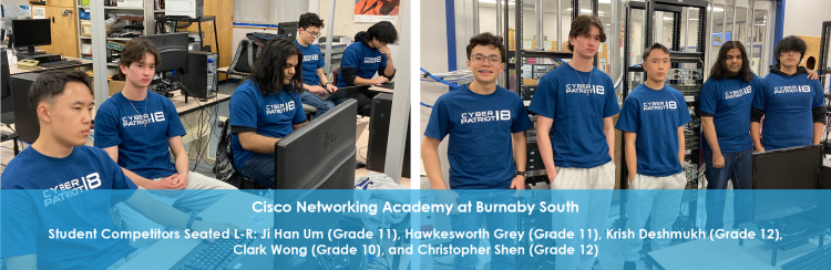 Students from the Cisco Networking Academy, located at Burnaby South Secondary, placed in the top five percent in round one of the CyberPatriot games - the world's largest cybersecurity competition. The students in the District-wide Program of Choice finished in the top 44 percent of nearly 2000 teams from across North America.