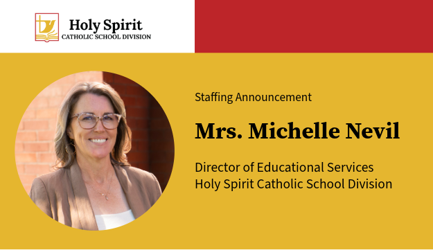 The Holy Spirit Catholic School Division is pleased to announce that Mrs. Michelle Nevil has been appointed as Director of Educational Services, a role based out of the St. Basil Catholic Education Centre.