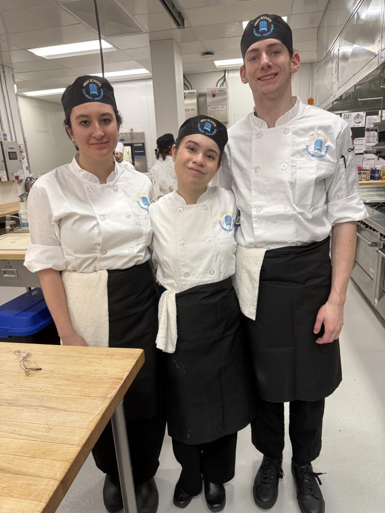 This year's HSCC comprised 17 teams from senior highs around the Edmonton region who competed in the challenge. Each three-member team prepared a three-course meal -- complete with an appetizer, entrée and dessert. A panel of six judges, made up of accomplished professional chefs, then evaluated the dishes using seven marking criteria: sanitation, timing, temperature, organization, presentation, preparation and, of course, taste. Overall, the judges were impressed with the calibre and skill level of EIPS' teams, especially Bev Facey's bronze medal winners.