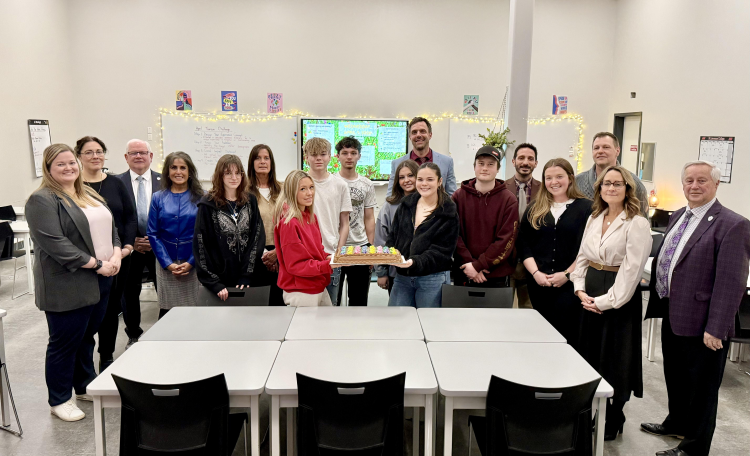ALCDSB Trustees, administrators and senior staff celebrate the launch of the School With-in a College (SWAC) program at St. Lawrence College in Kingston.