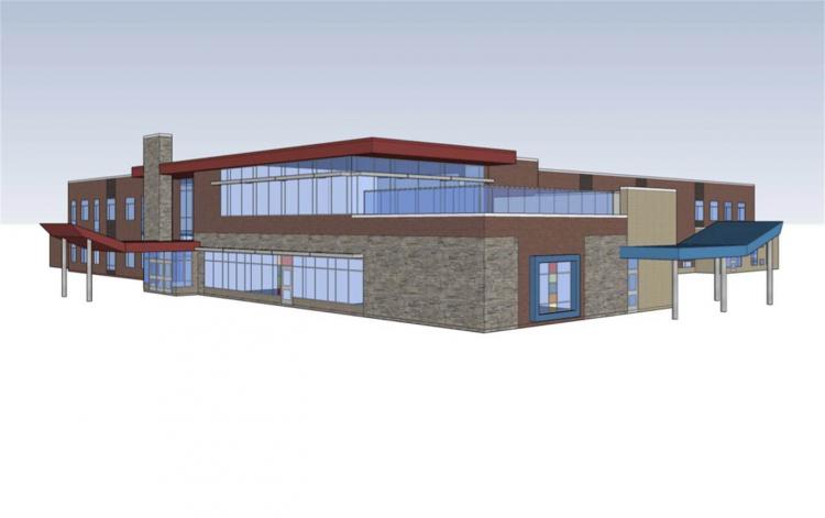 The replacement elementary school will accommodate 599 students and provide 49 child care spaces in 3 child care rooms.