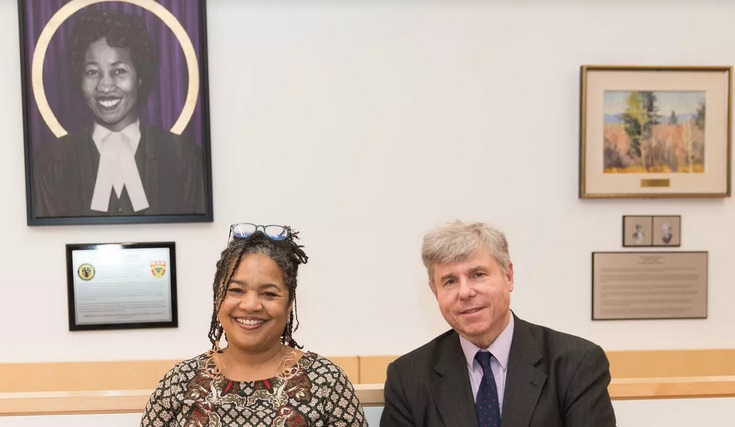 Jo-Anne Henry and UCalgary Law Dean Ian Holloway pose with the new portrait of Violet King Henry. Photo by Adrian Shellard