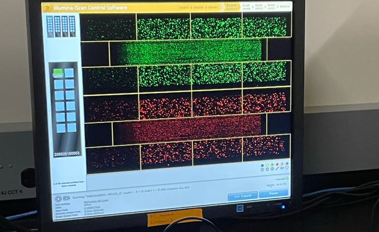 The images, he says, look like a bunch of tiny red and green dots. The computer takes the image and reads it. That data is processed, ultimately allowing researchers to be able to measure what proportion of the entire amount of DNA that was extracted had epigenetic marks on them and which did not.