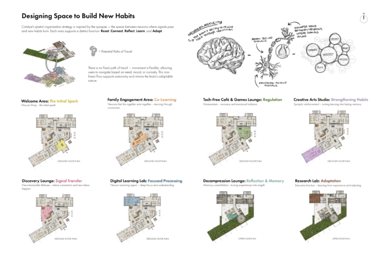 "I wanted to design a space that not only responds to the challenges of technology overuse but also helps people build healthier digital habits in a supportive environment," Lizette explains.