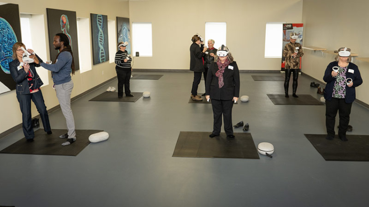 Guests at the Moncton site's 30th anniversary open house experience virtual reality headsets.