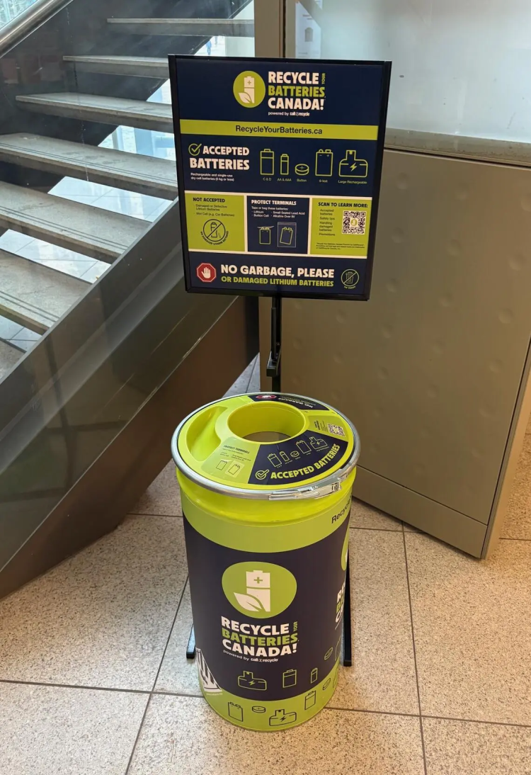 UCalgary has installed a Recycle Your Batteries, Canada! smart battery collection container in the Taylor Family Digital Library, a busy space on campus. Equipped with internal sensors to track fill levels and temperature, the container ensures safe, efficient, and timely collection. Additional collection boxes across campus offer even more convenient drop-off points, making it easier than ever for the community to participate.