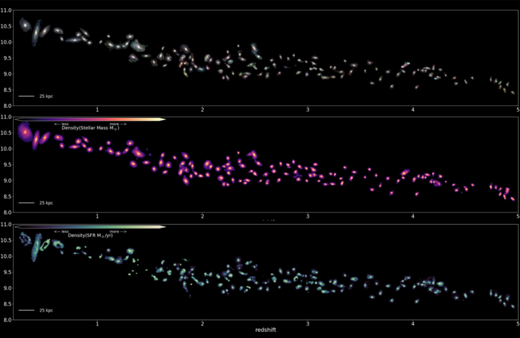 JWST's exceptional spatial resolution allowed the researchers to create detailed maps of the stellar mass and star formation activity across each galaxy. These maps show where stars were already in place and where new stars were forming at different phases in a galaxy's life.
