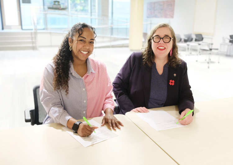 Ashley Hill, Founder & Executive Director of The PREP Academy, signs the MOU with Dr. Shannon Dea, Provost & VPAR at Saint Mary's University