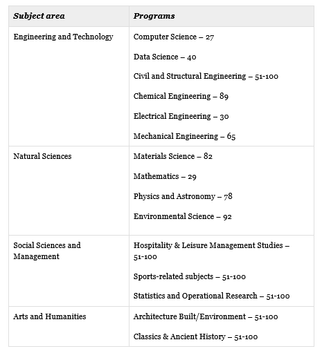 A breakdown of Waterloo's global placements across broad subject areas is available below, with some rankings presented as ranges in accordance with QS reporting.