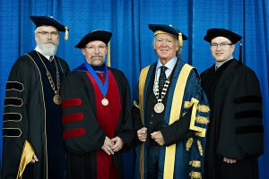 Lyle Best with President Gerald Krispin, Chancellor Allan Wachowich and Board Chair, Michael Wade.