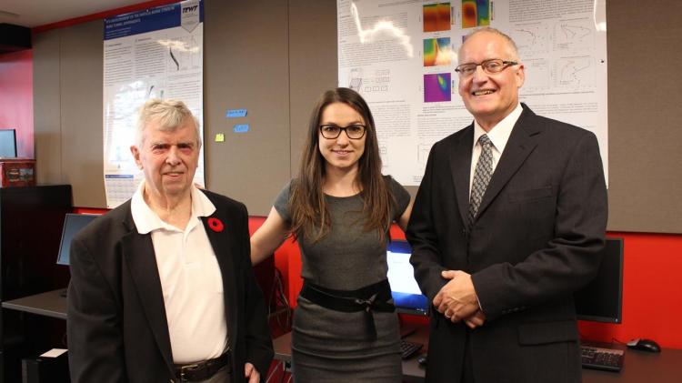 From Left: Dr. Donald Mackay, Ph.D. candidate Alena Celsie and Dr. Mark Parnis in the newly dedicated Don Mackay Environmental Modelling Room.