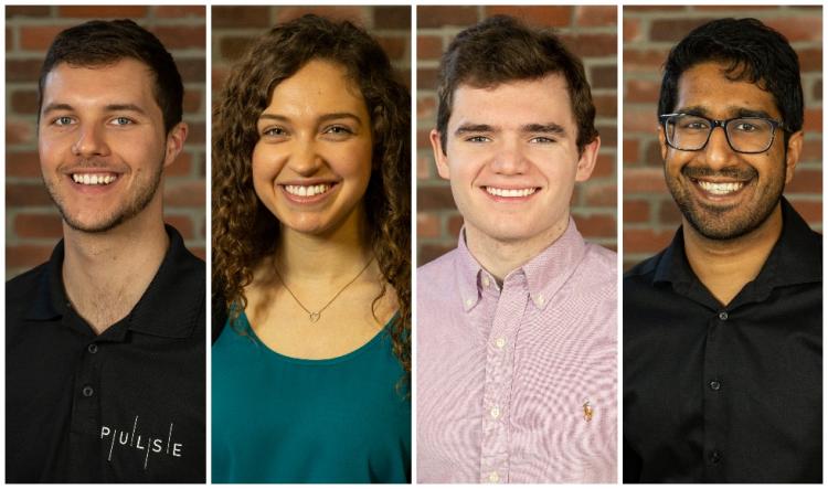 From left: Dawson Lucier, a recent alumnus with an Hons.BSc Kinesiology; Lianna Genovese, a student in the Integrated Biomedical Engineering & Health Sciences (iBioMed) program; William Douglas, a student in the Faculty of Health Sciences (Honours) program; and Andrew "Doren" Singh, a student in the Chemical Engineering program. Lucier, Genovese, Douglas and Singh are the grand prize winners of the sixth annual Forge Student Startup Competition, held virtually on March 30.