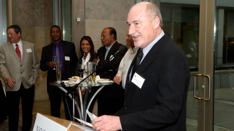 Robert (Bob) Everett speaking at an event for long-serving employees