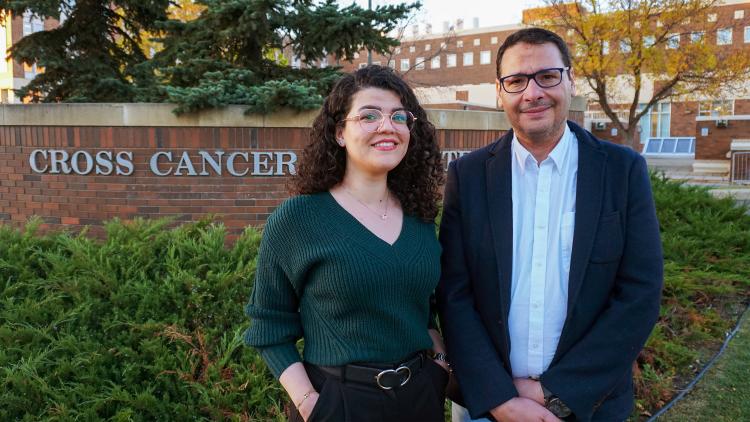Oncology professor Ismail Ismail (right) and PhD student Elham Zeinali (left) have identified a new function for a protein previously known to be involved with red blood cell development, offering a new target for interfering with cancer cells' repair and replication machinery. (Photo: Supplied)