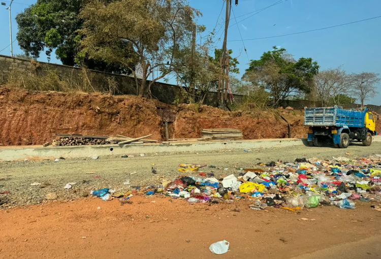 Plastic waste scattered along a roadside in Goa, India, highlighting challenges with local waste management. Photo courtesy of Ian Gates