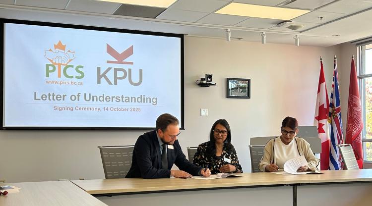 PICS supports new immigrants through a range of programs and services in areas such as education and employment. This new partnership, formalized with the signing of a Letter of Understanding, will include referral pathways to programs and courses at KPU, delivery of short courses and micro-credentials, and prior learning assessments for eligible learners.