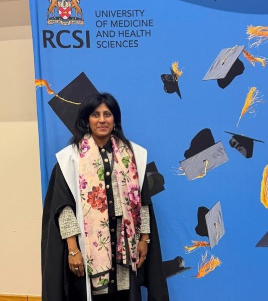 Dr. Melba D'Souza, associate professor in TRU's School of Nursing, after receiving the Fellowship of the Faculty of Nursing and Midwifery from the Royal College of Surgeons in Ireland.