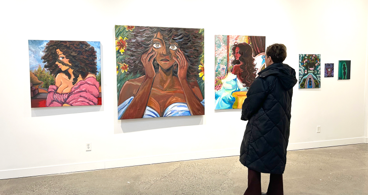 Oils on canvas by Augusta Nwuke, contributing artist in The Black Canvas: Honouring Black Brilliance exhibit at the TRU Art Gallery, Feb. 2 to 13. The exhibit, recognizing 30 years since Black History Month was first introduced in Canada, is a collaboration between TRU's Office of Equity, Diversity, Inclusion and Anti-Racism, the Caribbean Diaspora Society of Kamloops, the Kamloops Art Gallery, the Unique Get Together Society, and the TRUSU Afro-Caribbean Students Association.