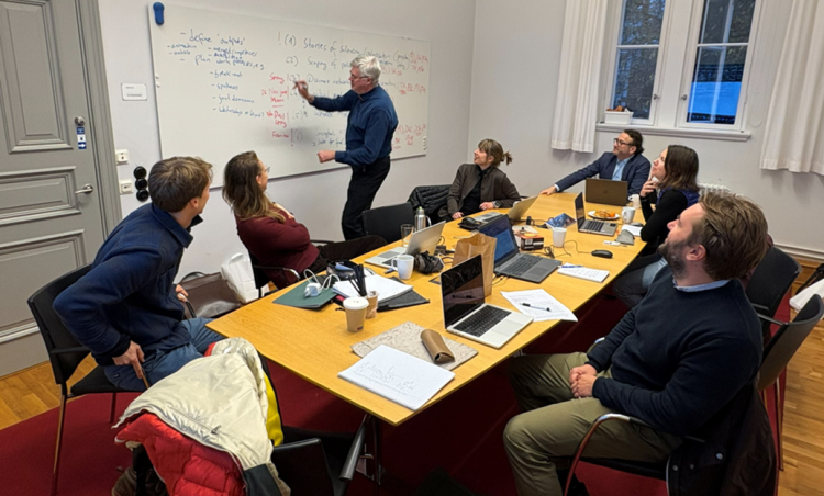 Professor Wyatt (standing) with the "Let's talk about Swedish forests" group at Pufendorf IAS.