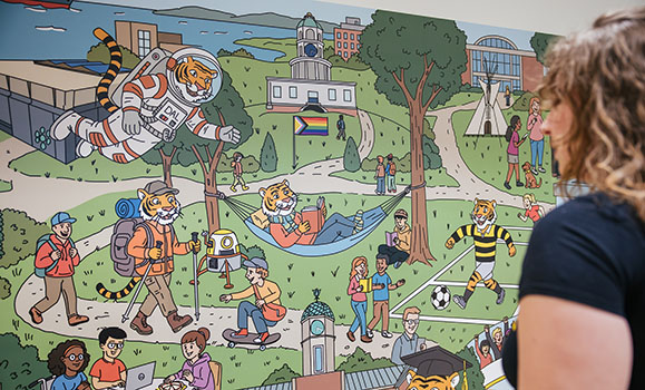 "The Tigers and Rams represent every future Tiger and Ram," she says. "There's one in the lab, there's one in the new area, one graduating. If you look closely, you'll even see the Halifax Harbour and George's Island."