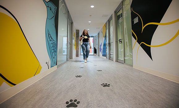 Tiger prints on the floor add a fun little element to the wayfinding experience, too, and complement some of the more conventional arrows and informational signage included in the project.