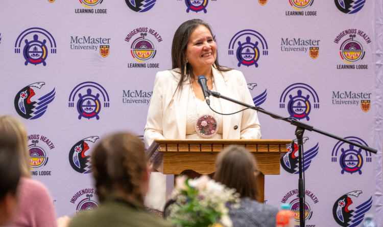 "Dr. Jacobs, we hope that you will develop a powerful sense of belonging on our campus and feel supported by your peers, both Indigenous and non-indigenous," Provost Maureen MacDonald said. "You have my support and I know you have President Tighe's support as well." (Georgia Kirkos, McMaster University)