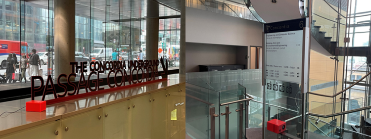The red boxes recently installed in Concordia's Engineering, Computer Science and Visual Arts Integrated Complex (EV Building) house sensors that monitor indoor air quality. Photos by Zhihan Wang